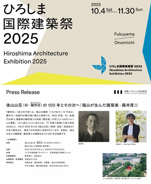10/4(土)から11/30(日)までの58日間、福山と尾道を中心に「ひろしま国際建築祭2025」が開催されております