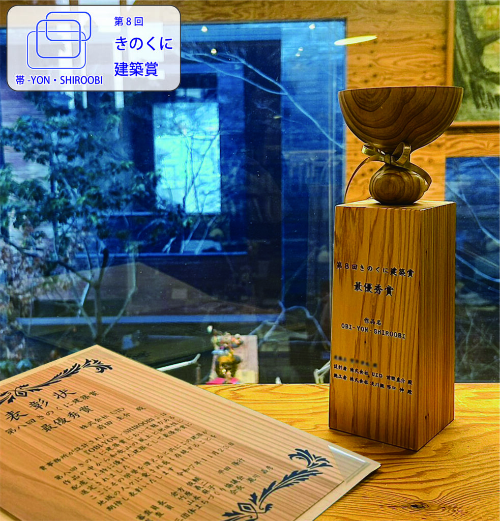 「建築三団体まちづくり協議会(和歌山県建築士会・和歌山県建築士事務所協会・日本建築家協会近畿支部)主催の『第8回きのくに建築賞』にて、UIDが手掛けた和歌山の住宅『帯-Yon・SHIROOBI』が最優秀賞に選ばれました。