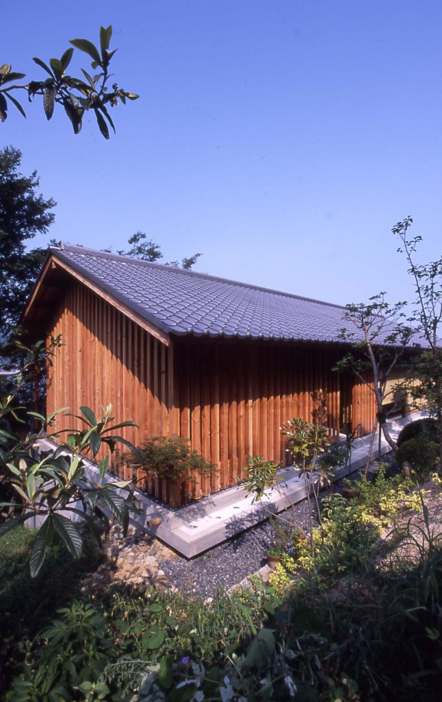 The house sits tucked into the hillside on the island of Tashima in Japan’s Seto Naikai (Inland Sea).Constructed largely of wood, the house also incorporates other natural materials including Bizen yaki from the local pottery, used in the entrance flooring,locally grown bamboo for the drainpipes and traditional Japanese unglazed tiles for the roof.The house was designed and built to feel and reflect the changing seasons.Construction is complete but with the passing of time the house will continue to evolve and sit ever more comfortably on its hill together with husband and wife, watching time tick slowly by changing seasons.